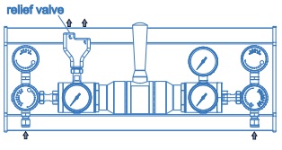 - na wyjściu ze stacji złącze ze zintegrowanym zaworem upustowym i odcinającym zaworem membranowym (jako opcja) – umożliwia odłączenie stacji od instalacji bez potrzeby jej opróżniania
