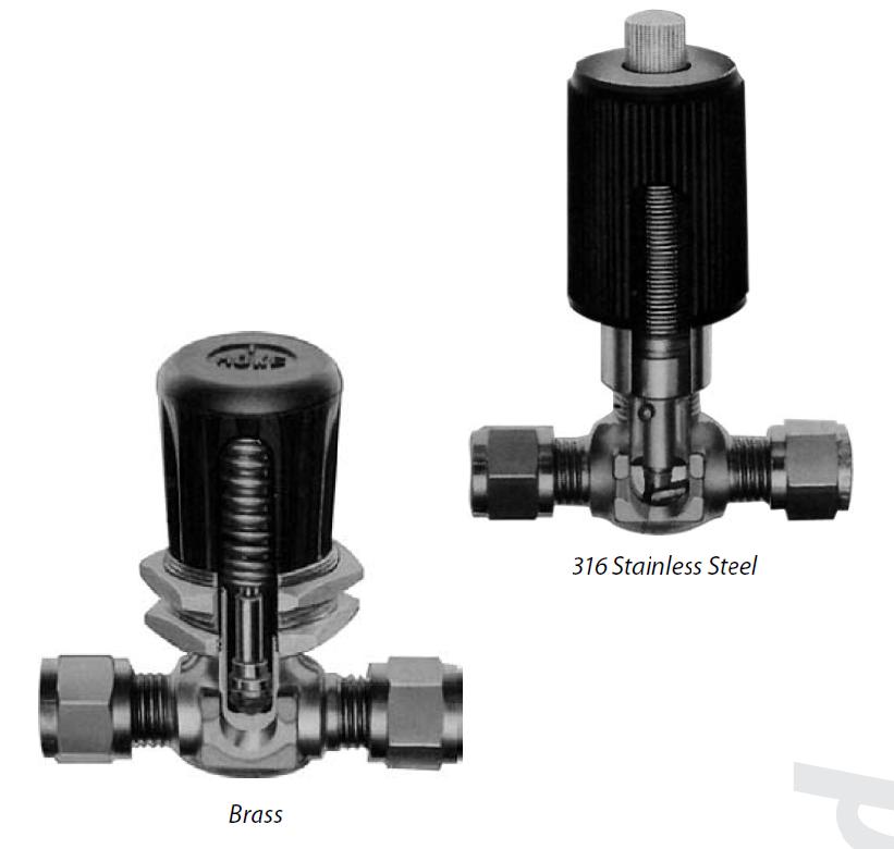 - zawory ze stali nierdzewnej: od próżni do 1000 PSIG w temp. 70°F (6,8 MPa przy temp. 21°C)