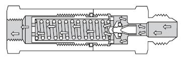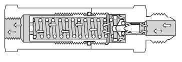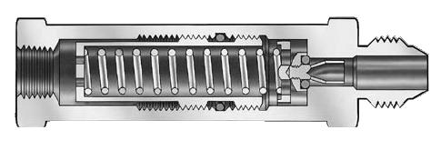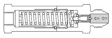 Sprężyna jest ograniczona przez siedzenie metal-do-metalu. O-ring gwarantuje szczelność zaworu. Im wyższe ciśnienie, bliższe wartości nastawionego ciśnienia zadziałania, tym zawór szczelniejszy.