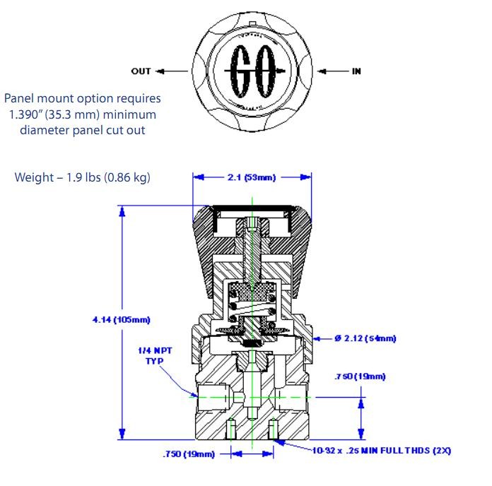 - gwint wewnętrzny NPT 1/4, 3/8, 1/8″, rurka fi 1/4″ długości 2″
