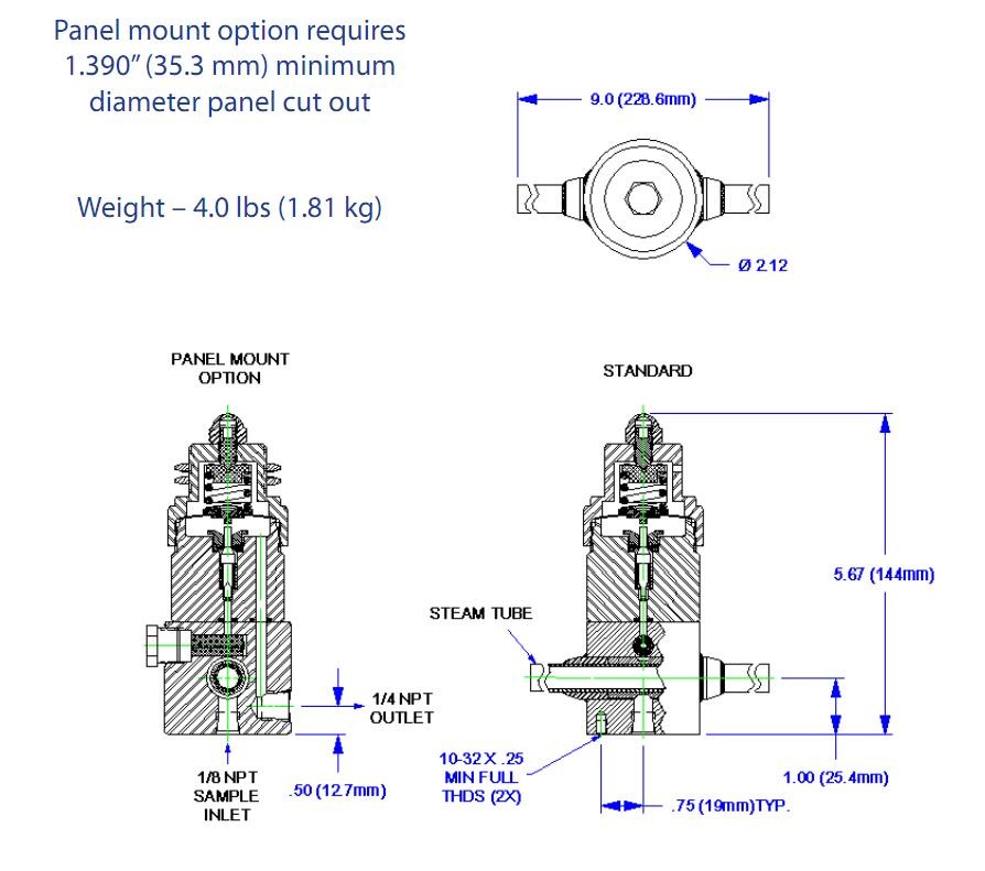 • gwint wewnętrzny NPT: 1/8″ i 1/4″