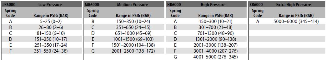 - HR6000: 150-5000 PSIG (10-34,5 MPa)